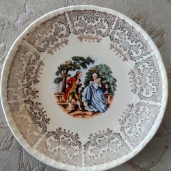 Vintage Sugar Bowl & Creamer / Gold Filigree Decorates Colonial Couple Man Playing Flute$50Mulberry, FL