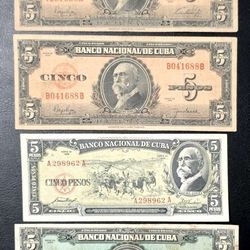 4 Billetes 5 Pesos-1(contact info removed)-1(contact info removed)-banco Nacional De Cuba-circulados$30Clermont, FL