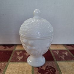 Vintage Avon White Milk Glass Pedestal Compote Candy Dish with Lid. $35Plant City, FL