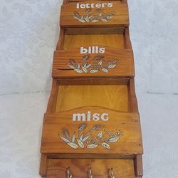 Wooden Wall Vtg Mail Organizer Letters Bills Misc w/ Key Hooks Rustic Home Decor$35St. Cloud, FL