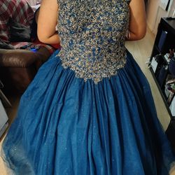 Size 24 Teal Blue And Gold Quince Dress Gown$80St. Cloud, FL