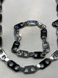 Brand New Stainless Steel Necklace/Bracelet Flat Two Tone Silver/Black Set Byzantine 6mm Necklace Size: 22" Bracelet Size : 9"$30Kissimmee, FL
