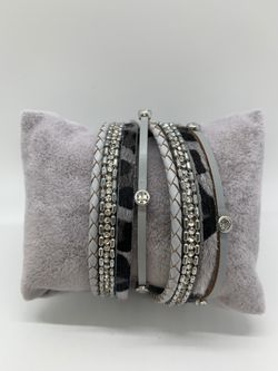 Grey Wrap Bracelet PU Leather With Leather Cord & Rhinestone Round Plated Multilayer$25Kissimmee, FL