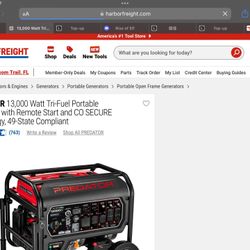 Predator 13000 Trifuel Generator$900Orlando, FL