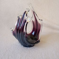 Handcrafted Art Glass Purple & Clear Wave Sculpture$90Frostproof, FL