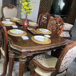 Elegant 9ft Glass Top Dining Table Set – Ornate Carved Design$2,200Kissimmee, FL