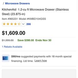 New Kitchen Aid Microwave Drawer$1,100Kissimmee, FL