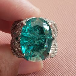 Size 8 Sterling Silver S925 Green Paraibapa Oval Zirconia Four Claw Holding Oval $30Kissimmee, FL