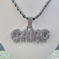 Set Necklace , Chain Stainless Steel / Pendant Silver Plated With CZ $60Kissimmee, FL