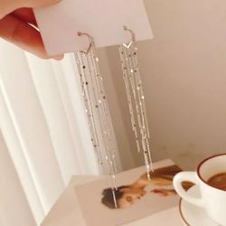 Long Metal Tassels Silver Hoops Drop Earrings $14Kissimmee, FL