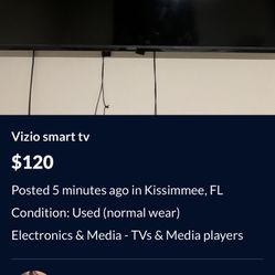 Vizio smart tv$120Kissimmee, FL
