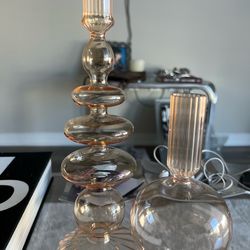 MCM Style Pinkish/Brown Ribbed Glass Taper Candle Holders - Set of 2$15Orlando, FL