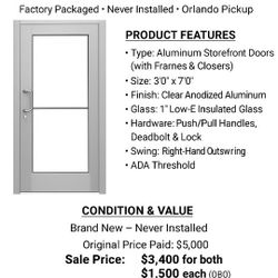 “Commercial Storefront Doors – Brand New – $1,500 each / $3,400 both – Orlando Pickup”