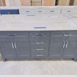 Brand New Beautiful Bathroom Vanity in Gray “72” double sink, Soft Close Solid Wood, 5 drawers and 4 doors and electrical outlets included with Marble$1,099Azalea Park, FL