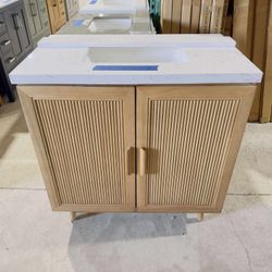 Brand new 30” Bathroom Vanity in natural wood finish and simple lines ,Soft close Two Doors and a Drawer with Black Handles and Top in white $399$399Azalea Park, FL