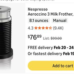 Nespresso 8 fl oz Milk Frother One-Touch Non-Stick Black Aeroccino 3 $50Orlando, FL
