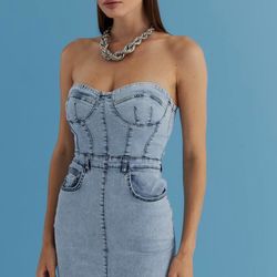 Strapless Denim Dress with Front Slit – Fitted Jean Dress $45Oakland, FL