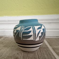 Signed Navajo Native American Sculptured Ceramic Pottery Vase Blue 2.5” Tall$18Deltona, FL