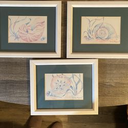 🐚🌊 Set of 3 Signed Coastal Shell Prints – Marcy Chapman – Framed 🌊🐚$30Orlando, FL
