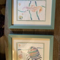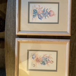 🐚🌊 Pair of Signed Marcy Chapman Coastal Prints – Seahorse & Shell – Framed 🌊🐚$40Orlando, FL