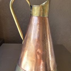 Vtg Copoer & Brass Pitcher/Jug 12.75"x8" Handcrafted In Turkey For Jatex$55Oakland, FL