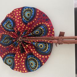 Handmade Foldable African Fan – Vibrant Red & Blue Ankara Print – Leather Handle$20Sanford, FL