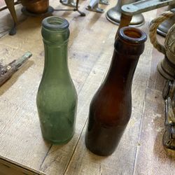 Antique Glass Bottle Pair – Early 1900s – Green Mineral Water & Amber Beer Bottle –$10Orlando, FL