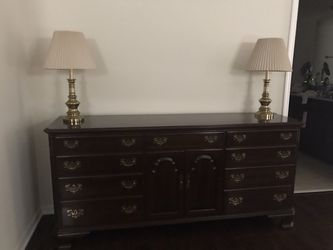 Solid dark cherry dresser, two side tables and armoire and 4 Baldwin brass table top lamps$400Oviedo, FL