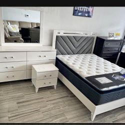 Brand New Queen Bedroom Set (Frame, Dresser, Nightstand, & Mirror )$899Sanford, FL