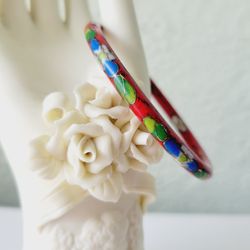 Vintage Glass Bangle Cuff Bracelet Hand Painted Green Red Blue Flowers Jewelry$12Deland, FL