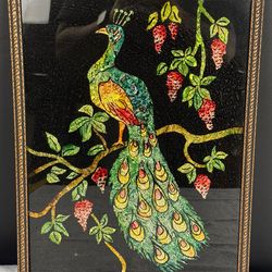 Vintage Peacock Reverse Glass Painting Framed Mid Century Wall Art 17x13$40Oakland, FL