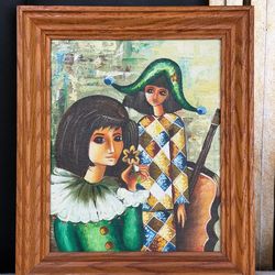 Vintage Harlequin Framed Painting Clown Jester Wall Art 12x10.5$40Oakland, FL