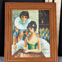 Vintage Harlequin Couple Painting Signed M Roldan Framed Wall Art 12.5x10.5$40Oakland, FL