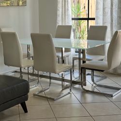 Dinning table Glass And Metal With 6 White Leather Chairs$500Oviedo, FL