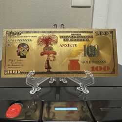24k Gold Foil Plated Anxiety from Inside Out Banknote Disney Collectible$10Orlando, FL