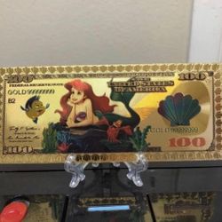24k Gold Plated Little Mermaid Disney Banknote $10Orlando, FL
