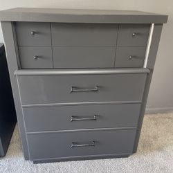 Dresser and chest pkg retro pieces Refinished modern gray refinished knobs All wood no scratches$600Clermont, FL