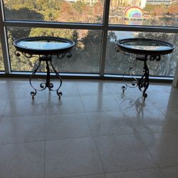 Two Classic Corner Tables Iron Frame Glass Top .Gold Inlay. $295Orlando, FL