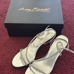 Womens fancy gemstone silver heels size 8 2 inch heels $8Orlando, FL