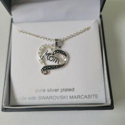 Sparkle Allure silver Plated Mom heart Pendant Necklace With Swarovski Marcasite$15Deland, FL