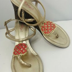Lilly Pulitzer Glam Jewel Stone Wedges Gold Pink Sandals Size 6 M$24Longwood, FL