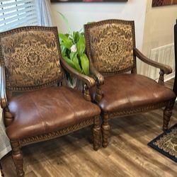 Pair of Classic Leather Armchairs with Carved Wood Frame$300Orlando, FL