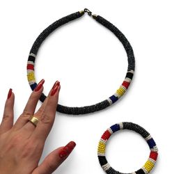 ✨STUNNING VINTAGE 1960’S AFRICAN BEADED CHOKER AND BANGLE SET RARE✨$69Spring Hill, FL