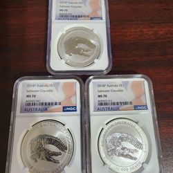 3- 2014P Australia S$1 Saltwater Crocodile NGC MS70$270Hudson, FL