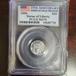 2006 $10 Platinum American Eagle 1/10oz PCGS MS70$400Hudson, FL