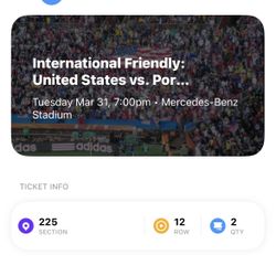 Portugal Vs USA 3/31/26$180Atlanta, GA
