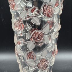 1980s Germany Mikasa Bella Rosa Pink Raised Roses & Frosted Leaves Crystal Vase - Vintage $48Woodstock, GA