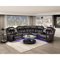 Sectional Dark Brown Recliners Elegant With LED Lights , Bluetooth Speaker #He$1,699Lilburn, GA