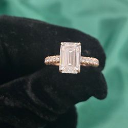 VVS D Moissanite Sterling Silver Rose Radiant Cut Solitaire Ring with Pavé Band$280Atlanta, GA