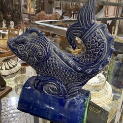 Antique Chinese Glazed Ceramic Roof Tile Fish Guardian Qing Dynasty 9in$450Snellville, GA